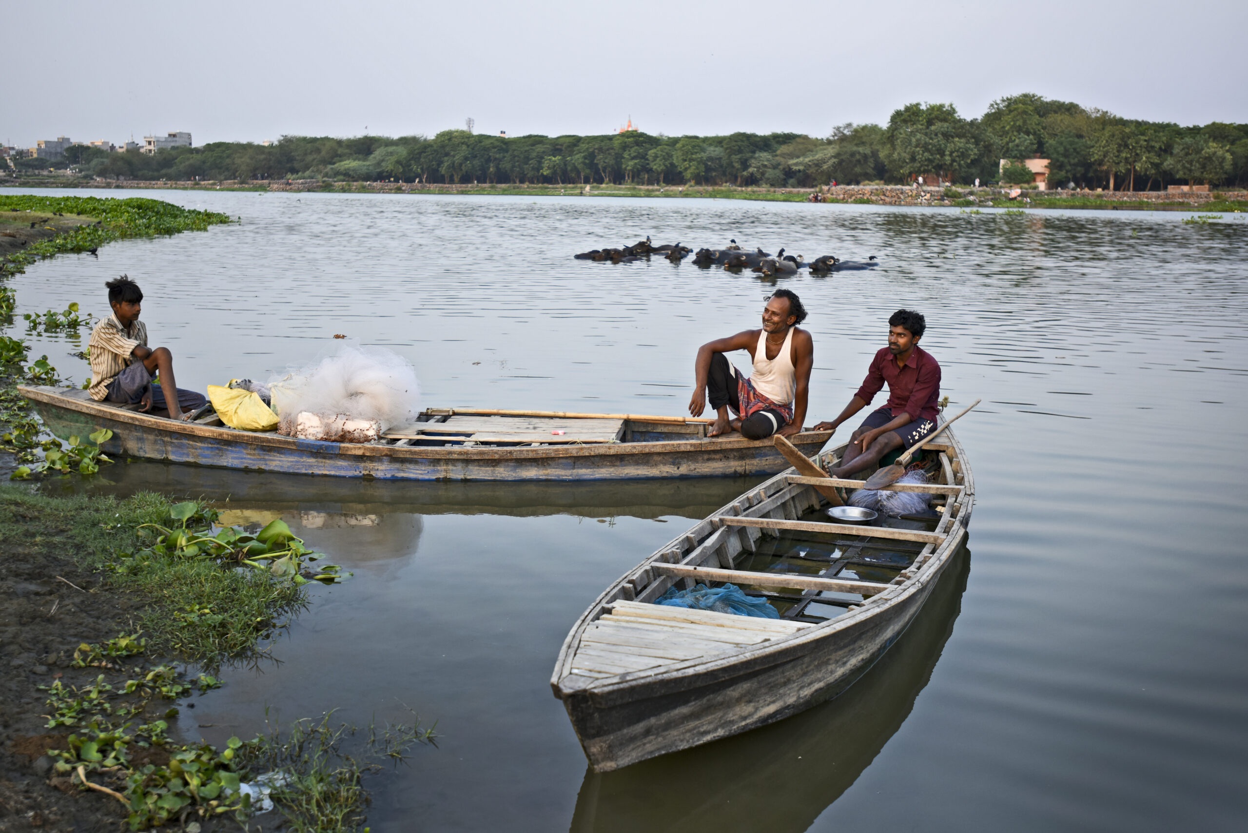 “The water was as clear as glass – when the drains were cleaner – till 20 years ago. A coin fallen in [to the bottom of the river] could be seen from above. We could drink directly from the Yamuna,” says fisherman Raman Haldar, scooping a cupped palm into the muddy waters, bringing it near his mouth to emphasise the point. Seeing our mortified look, he lets it run down his fingers with a wistful laugh.